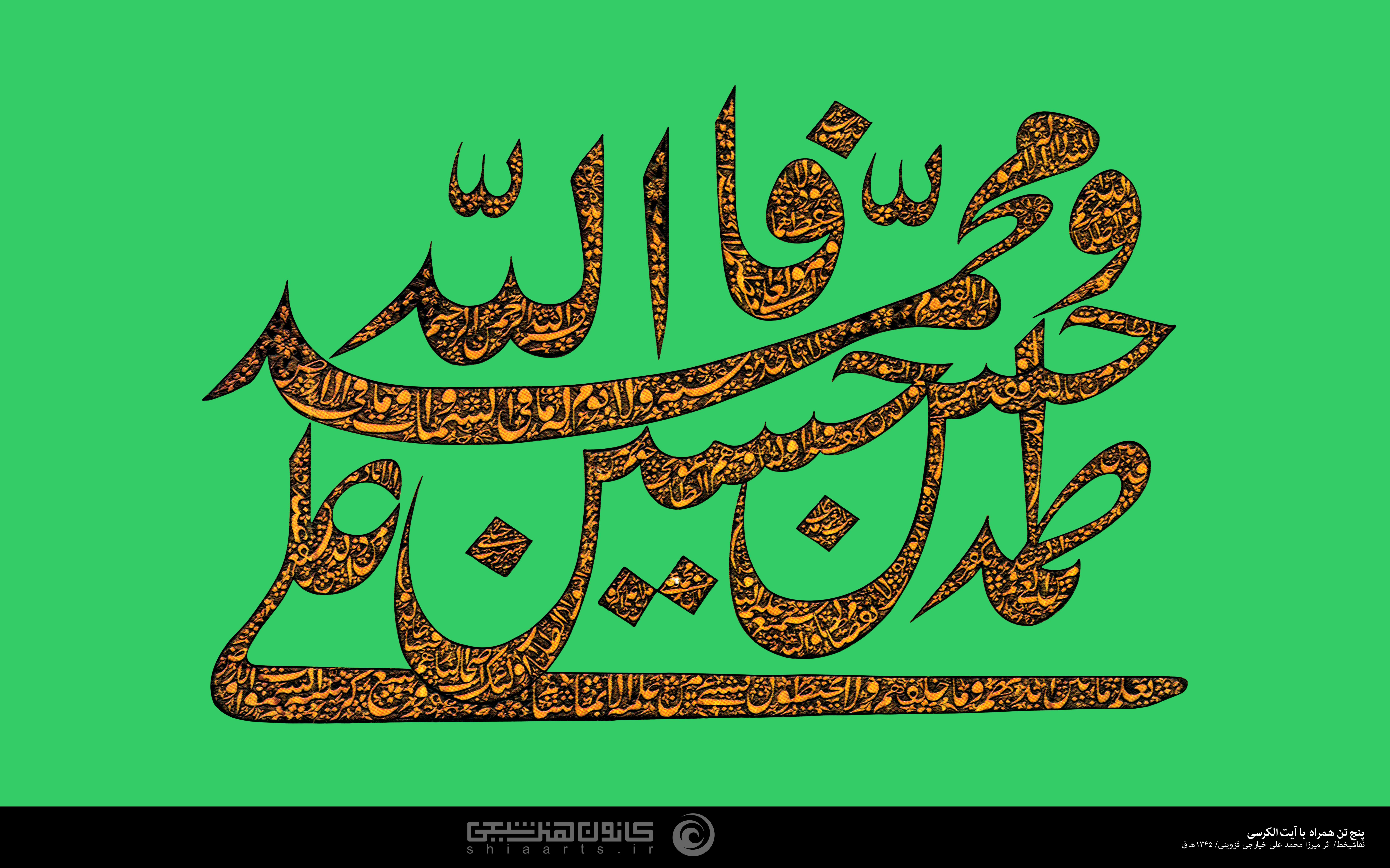 کتابت نام مبارک پنج تن (علیهم‌السلام) همراه با آیت الکرسی
